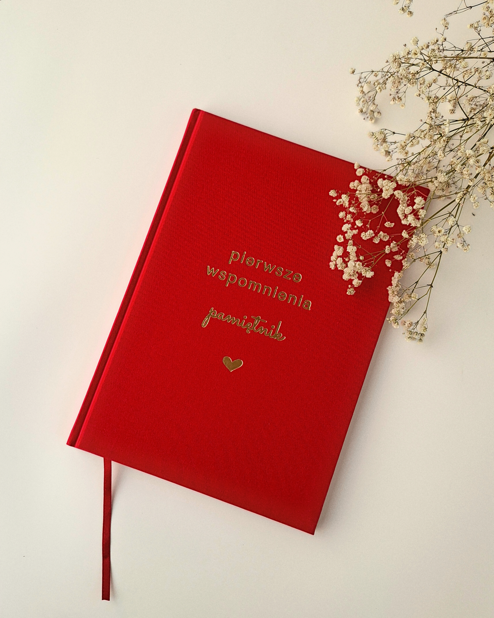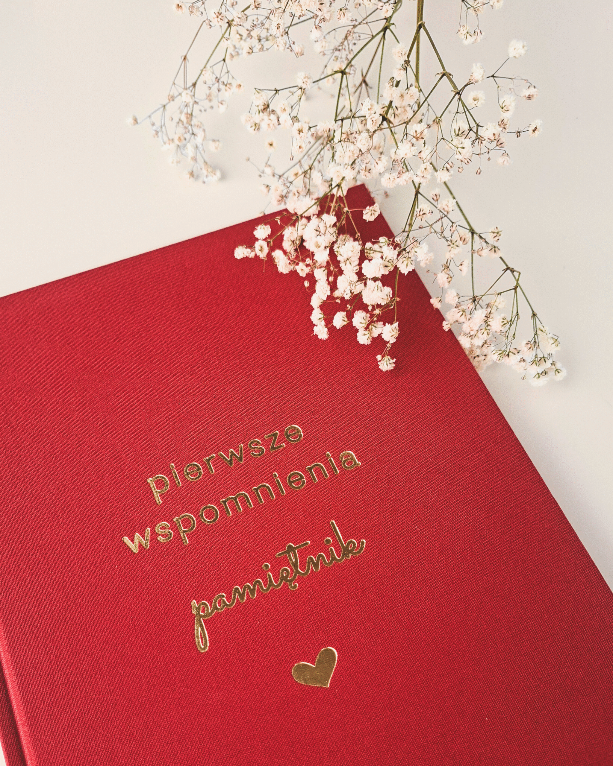 Czerwony pamiętnik dziecka „Pierwsze wspomnienia” to doskonały pomysł na prezent z okazji narodzin, chrztu lub baby shower.